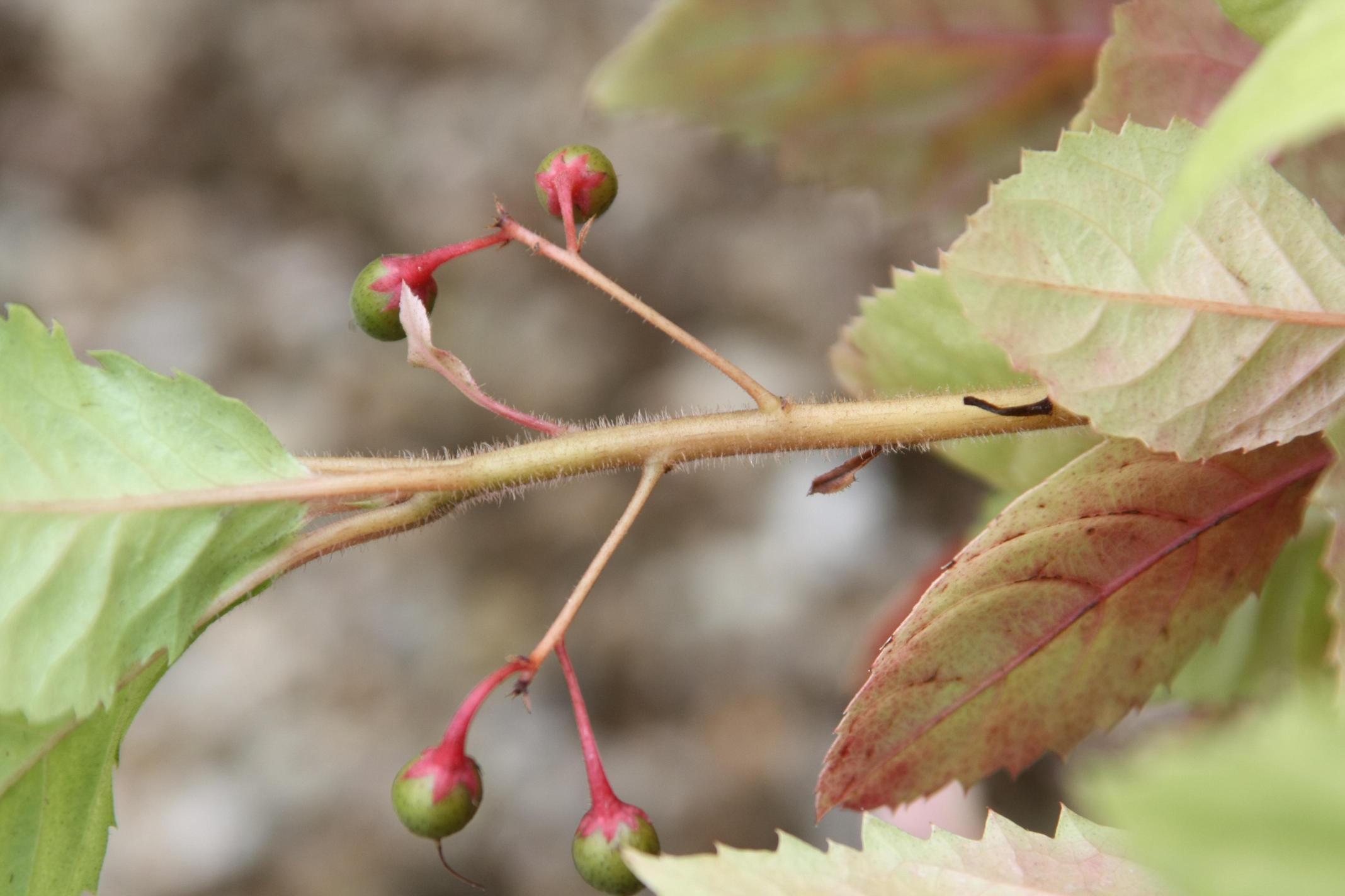 열매는 다육성의 핵과로 둥근모양이며 붉은색이다. 열매가 9월에 성숙해서 이듬해 6월까지 달려 있다.