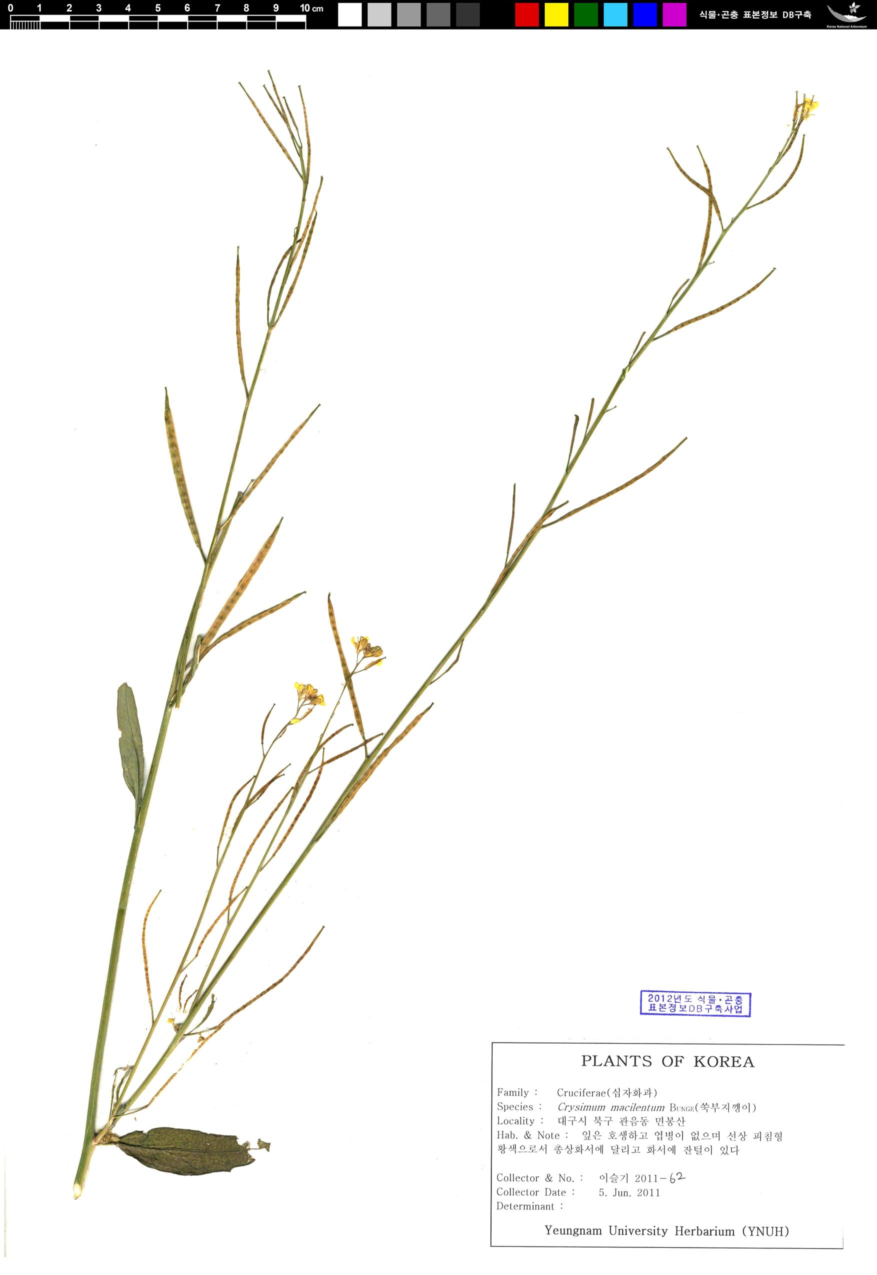 요약설명 : 십자화과 2년생 초본으로 중국과 우리나라 일부지역에 분포한다.