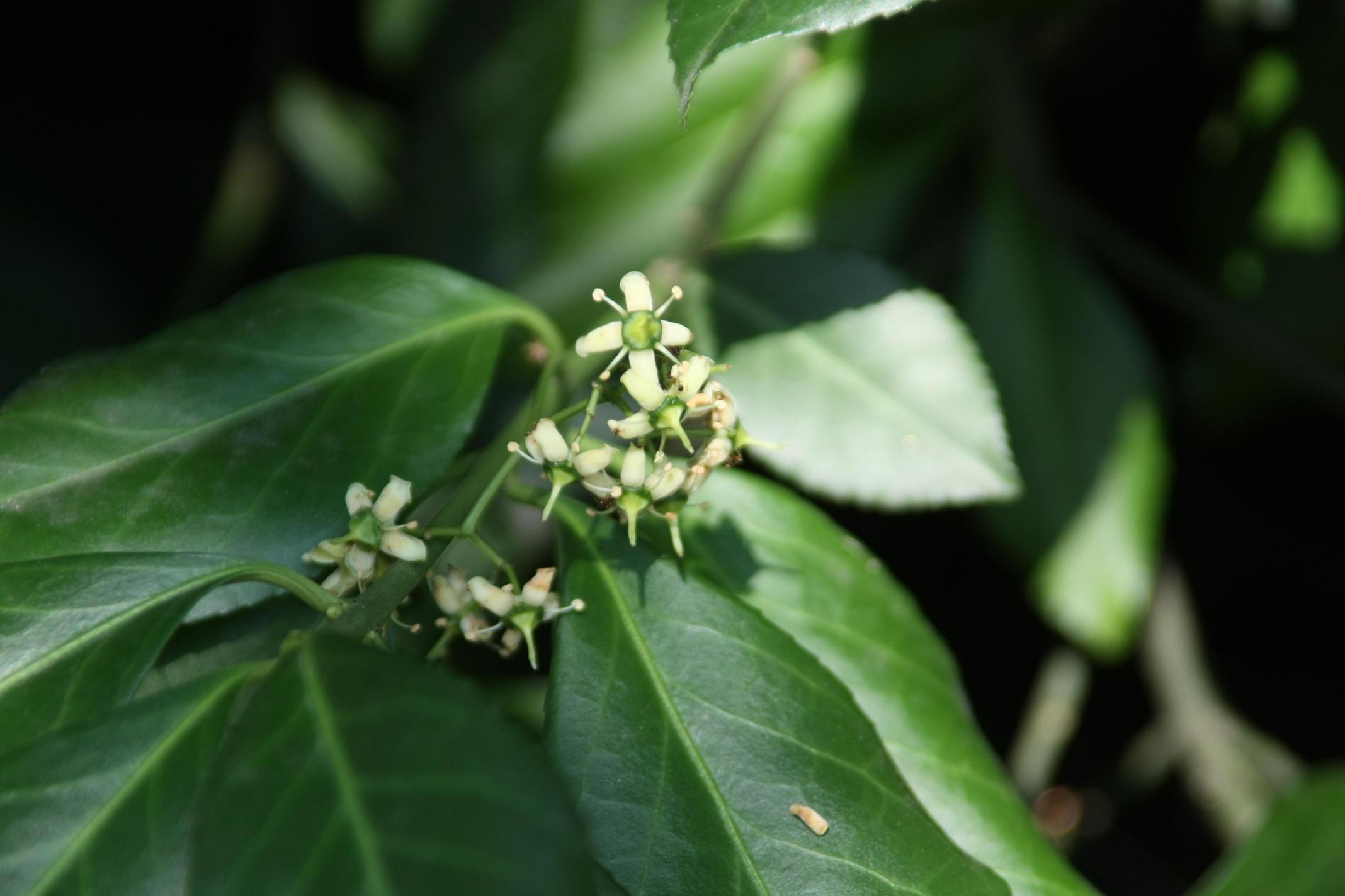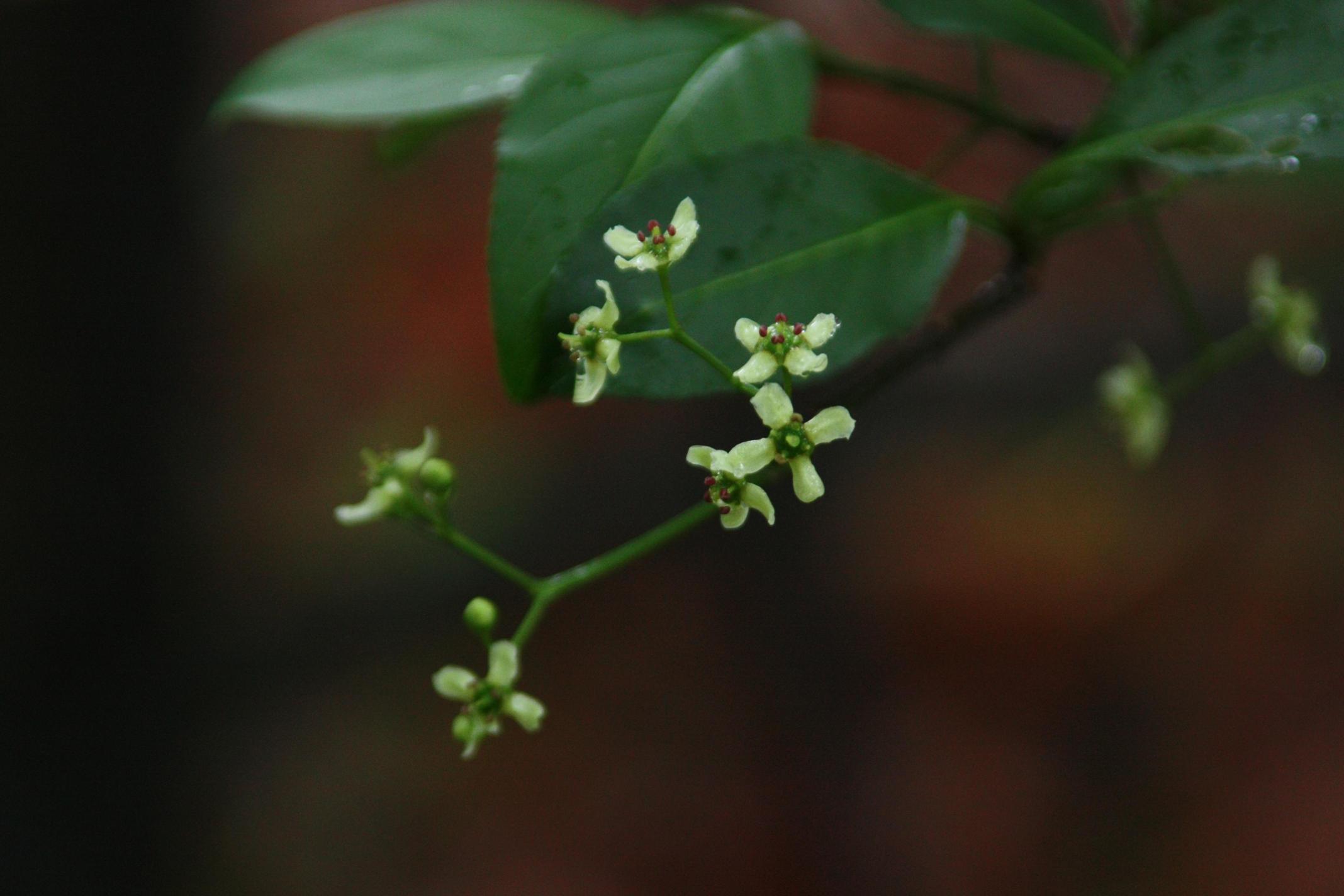 꽃은 6월에 녹황색으로 피고, 잎 달린 자리에 또는 가지 끝과 가까운 부분에서 취산꽃차례를 이룬다. 꽃받침과 꽃잎 및 수술은 각각 4개이다.