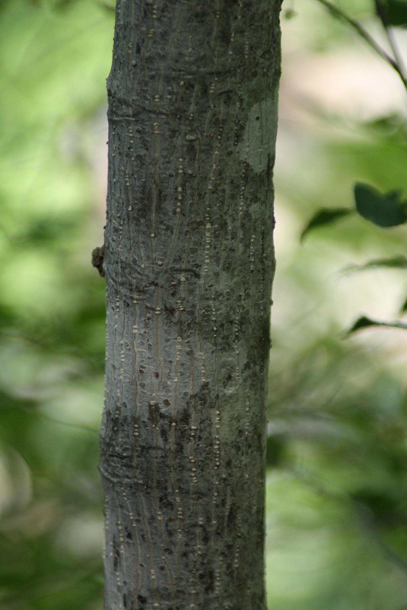 하나의 줄기가 곧게 올라가며 그 줄기에서 많은 가지가 나와 밑으로 늘어진다. 나무껍질은 녹갈색이다.