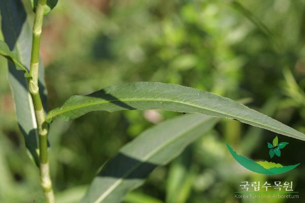 개화기 : 8월,7월잎은 어긋나고 창 모양 또는 넓은 창 모양이며 점첨두 둔저이다. 잎자루가 거의 없다. 식물이 전체적으로 크고 털이 적다. 잎 뒷면의 맥 위와 겉면 전체 또는 가장자리에만 털이 있다. 턱잎은 가장자리에 수염 같은 털이 있다.