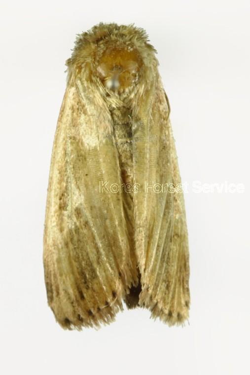 일반특징 한쪽 날개 끝에서 반대쪽 날개 끝의 길이는 12~15mm이다. 앞날개는 연한 회색빛을 띤 갈색이고 중앙에 세로로 가느다란 어두운 갈색 띠 무늬가 있다. 뒷날개는 흰색이며 가장자리는 다소 어두운 갈색을 띤다.1년에 2~3번, 5~9월에 걸쳐 나타난다.