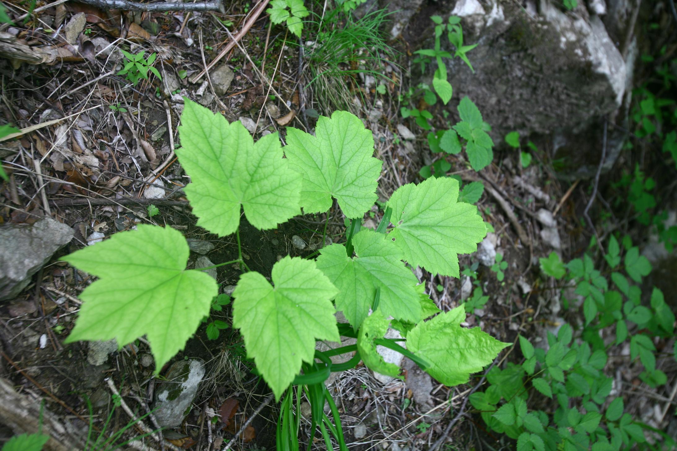 개화기 : 8월뿌리잎은 길이 1m에 이르며, 줄기잎은 어긋나고 긴 잎자루 끝에서 2~3회 삼출겹잎 또는 깃털모양의 삼출겹잎으로 갈라진다. 작은 잎은 달걀모양 또는 타원 모양이며 끝이 뾰족하고 가장자리에 결각상의 톱니가 있다.