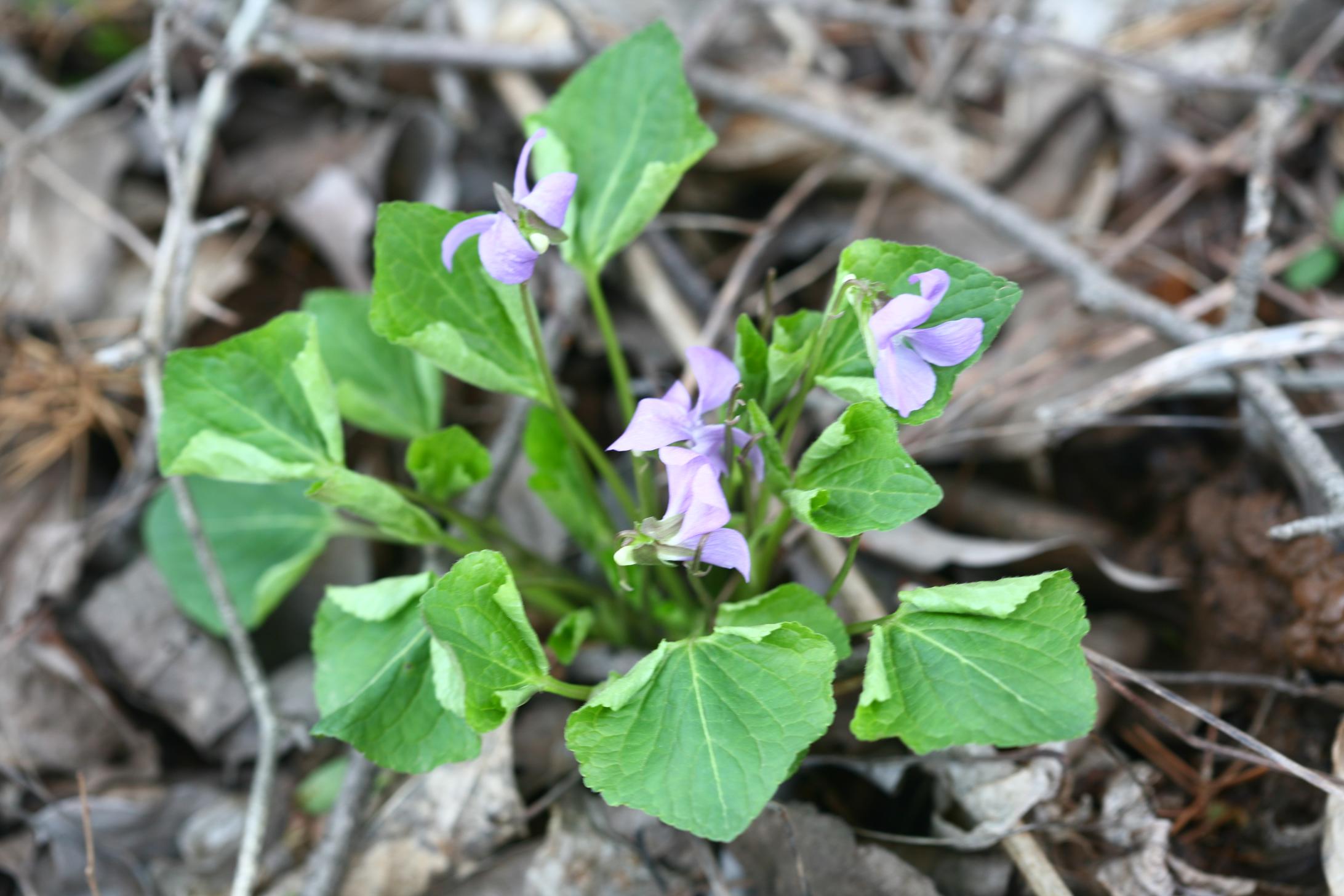 개화기 : 4월잎은 밑동에 빽빽하게 나 있고 달걀 모양 또는 긴 달걀 모양이며 깊게 손바닥 모양으로 갈라진다. 갈라진 가운데 잎은 다시 크게 3개로 갈라지고, 결각상의 톱니를 가진다. 또한 이 잎은 밑으로 흐르듯 이어져 긴 대가 된다. 옆에 있는 조각은 각각 2개로 갈라져 있다.