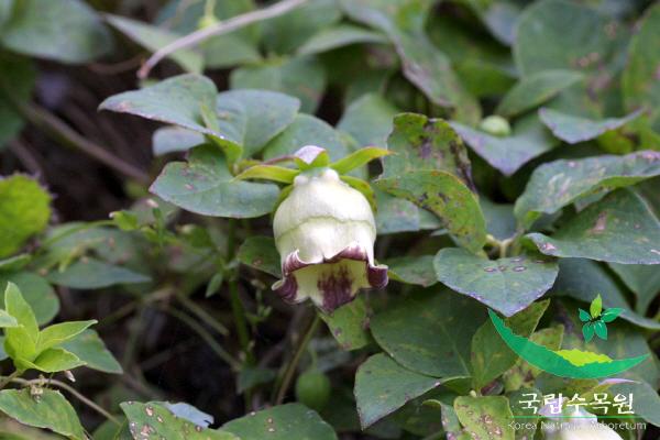 꽃은 7~8월에 피고 곁가지 끝에 1개씩 달리며, 그 밑의 잎겨드랑이에서도 계속 핀다. 꽃받침은 5개로 갈라지고 털이 없으며 창 모양이다. 꽃잎 전체는 종 모양이고 자주색이다. 또한 끝이 5개로 갈라지는데, 이 갈라진 조각은 세모 모양이다.